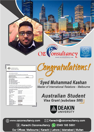Many Congratulations to Mr. Syed Muhammad Kashan for getting Student Visa Grant (SC 500). We the OZ TEAM adores the faith and confidence you have shown on us. We wish you a great journey ahead.
