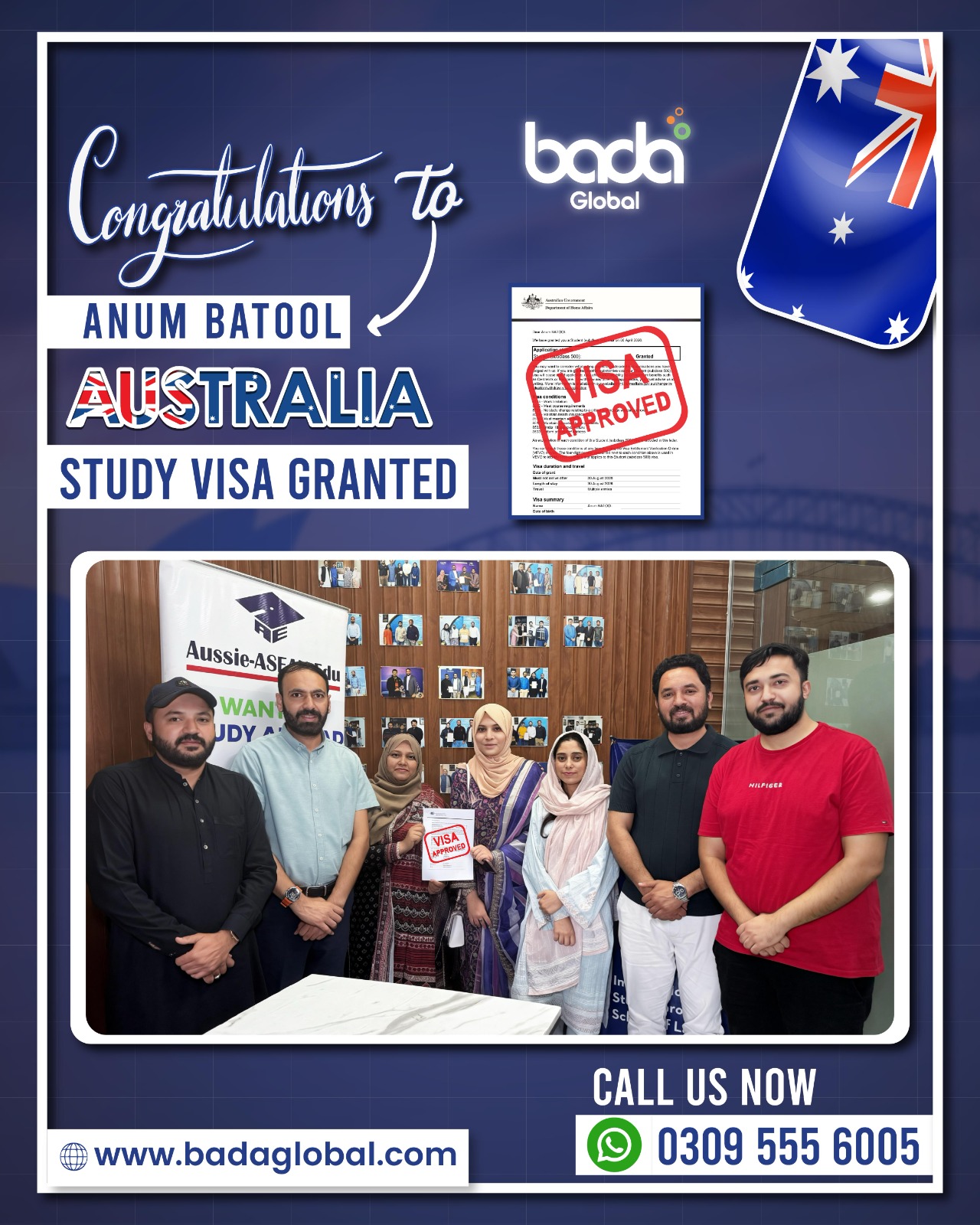 We are proud to share another success story โ Anum Batool has successfully received her Australia Study Visa! ๐โ๏ธ